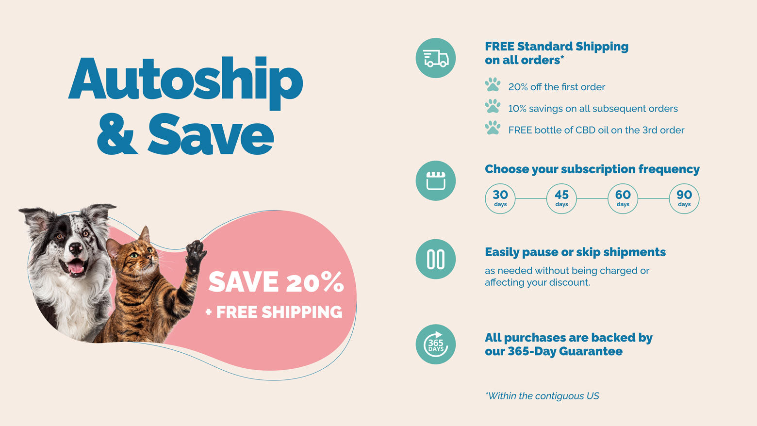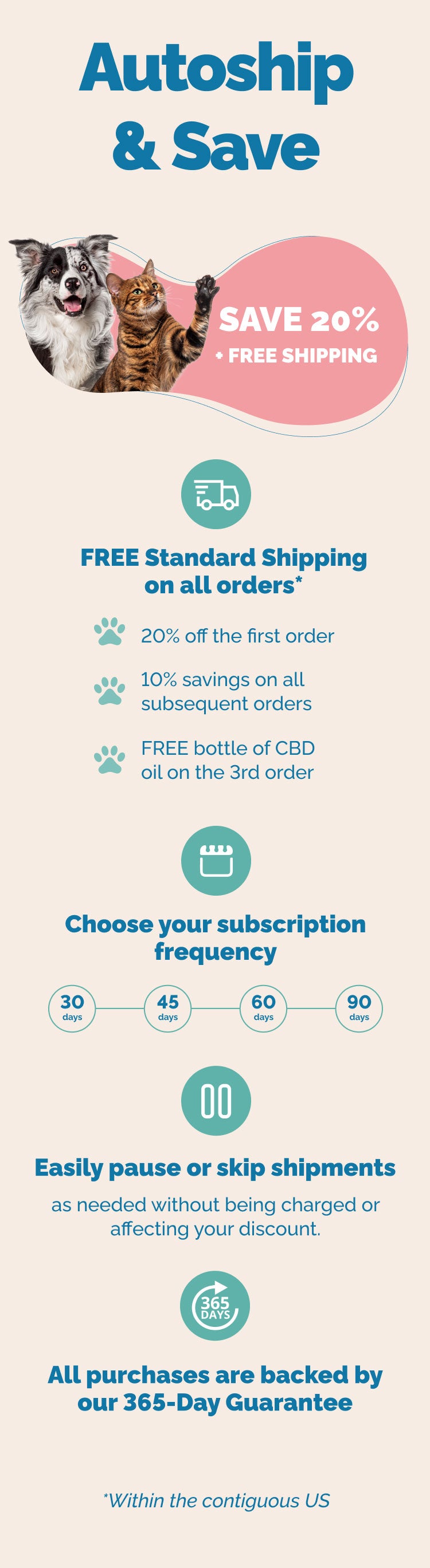 As always, our subscriptions are backed by the Prana Pets 365 Day Money-Back Happiness Guarantee! Customers can only cancel their autoship & save orders after a 20-day window from the date of their initial order. The purpose of this policy is to allow sufficient time for customers to receive and try our product. After the 20-day period, customers can cancel their subscription. To do so, customers must log into their account on our website and follow the cancellation process. The cancellation request should be made after the 20-day period has elapsed. Customers will not be charged any further fees or receive additional shipments once the subscription is canceled. For any questions or assistance with the cancellation process, customers can reach out to our Customer Happiness Team at +1.800.368.0016. Please note that by placing an order and subscribing to our product, you agree to adhere to the cancellation policy outlined above. If you have any other questions, or for issues with current subscriptions, please email us or call us at +1 800.368.0016 and talk to a member of our team!